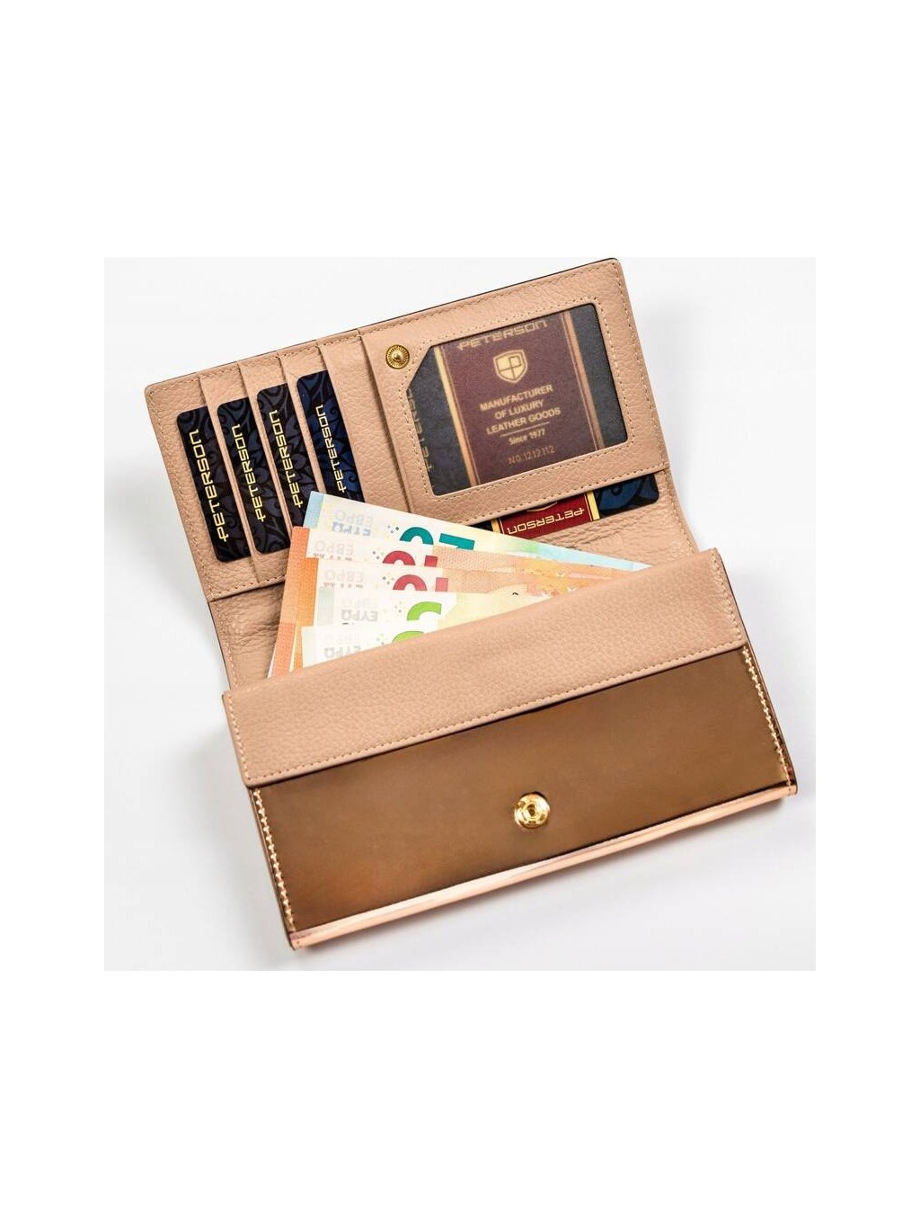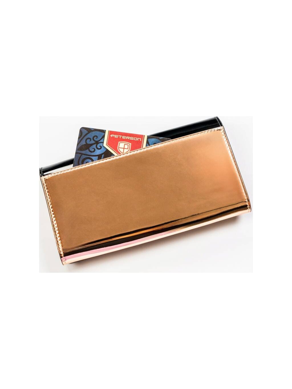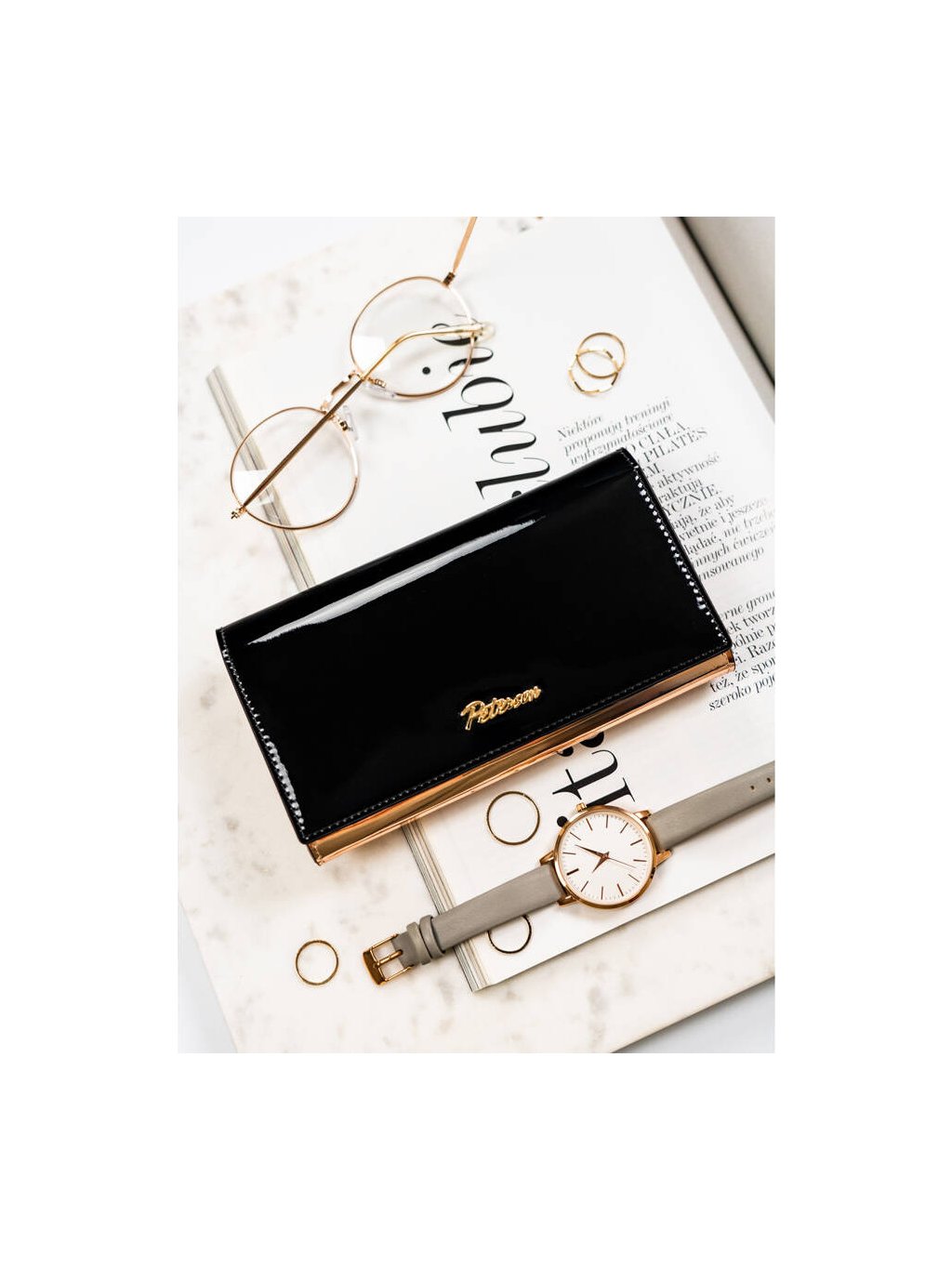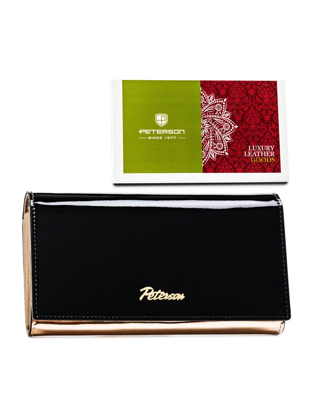 VELKÁ ČERNO-ZLATÁ DÁMSKÁ PENĚŽENKA SE ZAPÍNÁNÍM NA PATENTKY PETERSON Y710