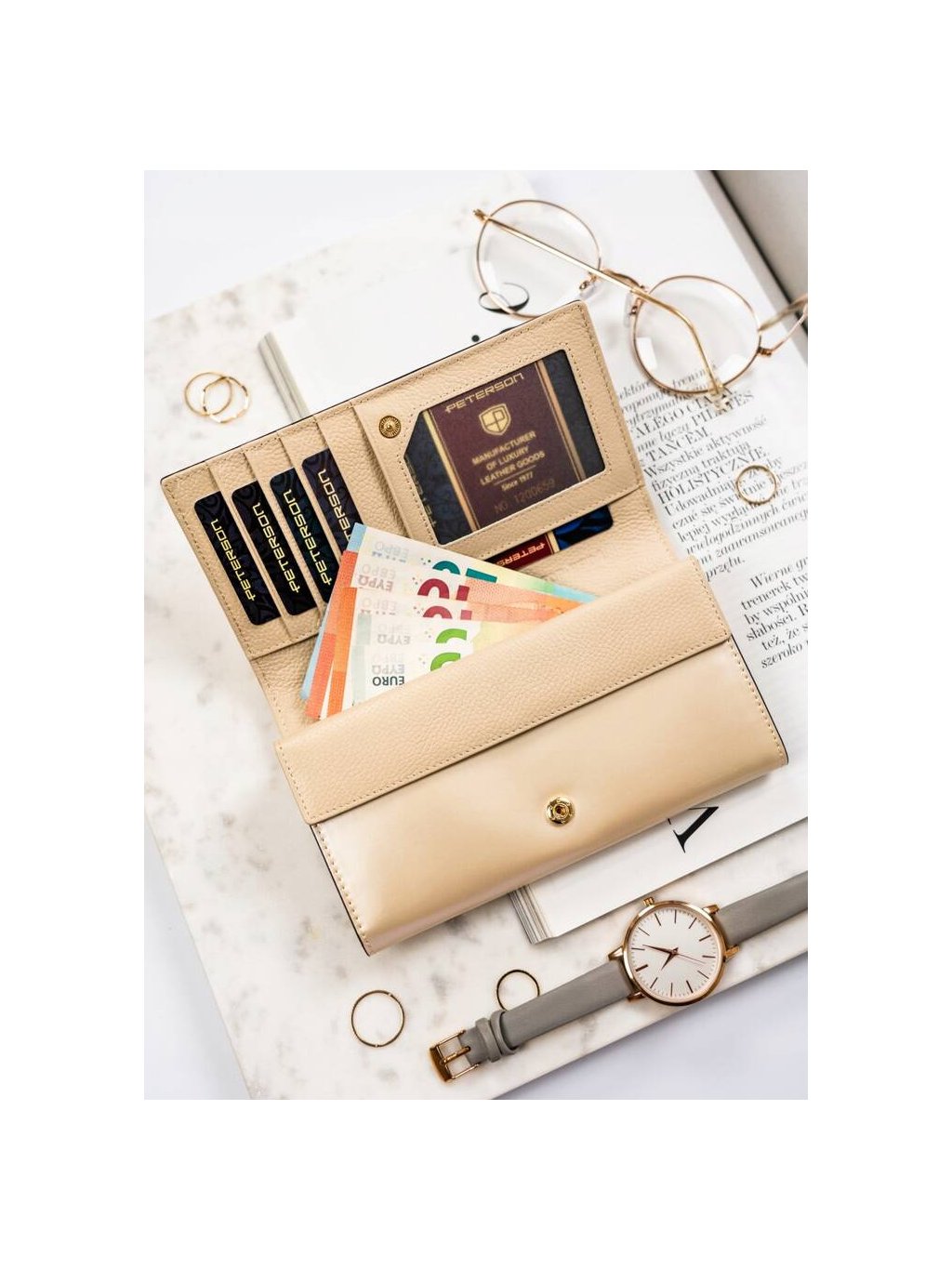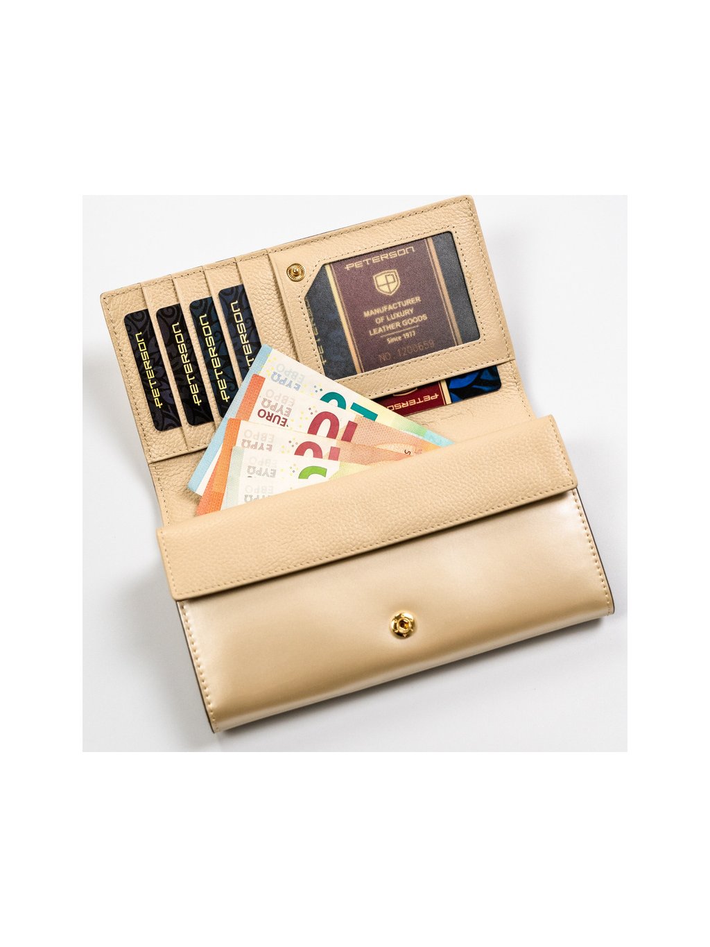 VELKÁ SMETANOVÁ DÁMSKÁ PENĚŽENKA SE ZAPÍNÁNÍM NA PATENTKY PETERSON Y711