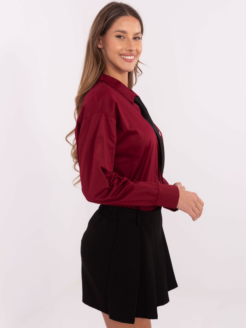 VÍNOVÁ DÁMSKÁ KOŠILE S ODEPÍNACÍ KRAVATOU