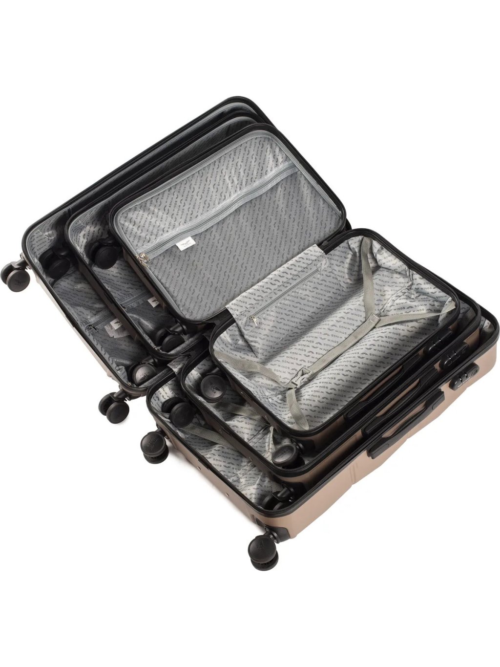 Sada modernizovaných kufrů PEACOCK! Tyto moderní kufry se vyznačují jasnými barvami a pevnou konstrukcí, která zajišťuje pohodlí a styl na cestách.