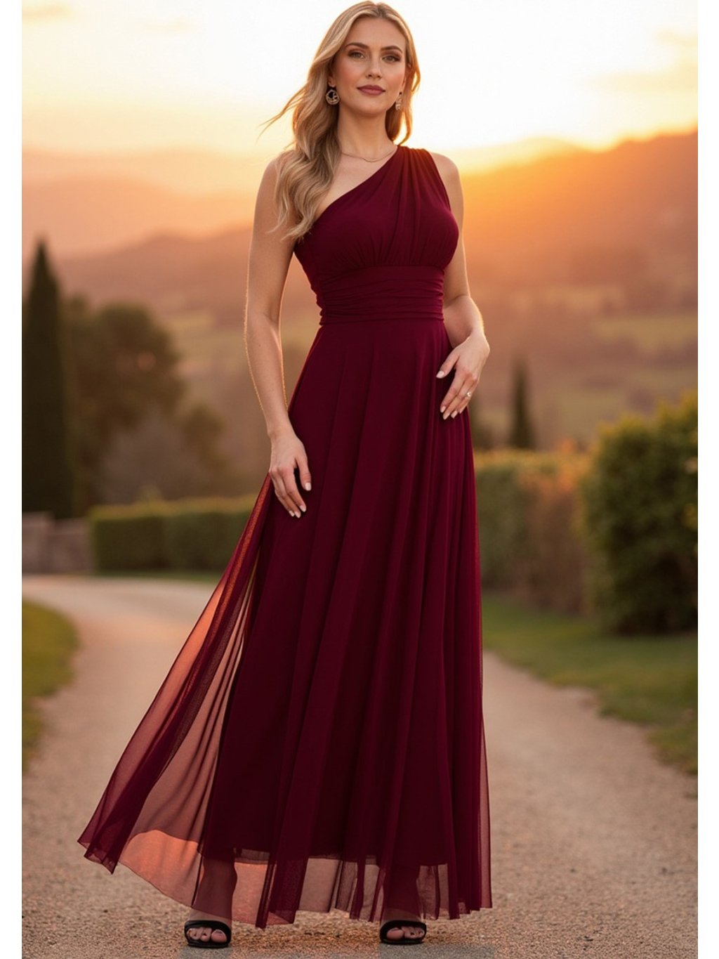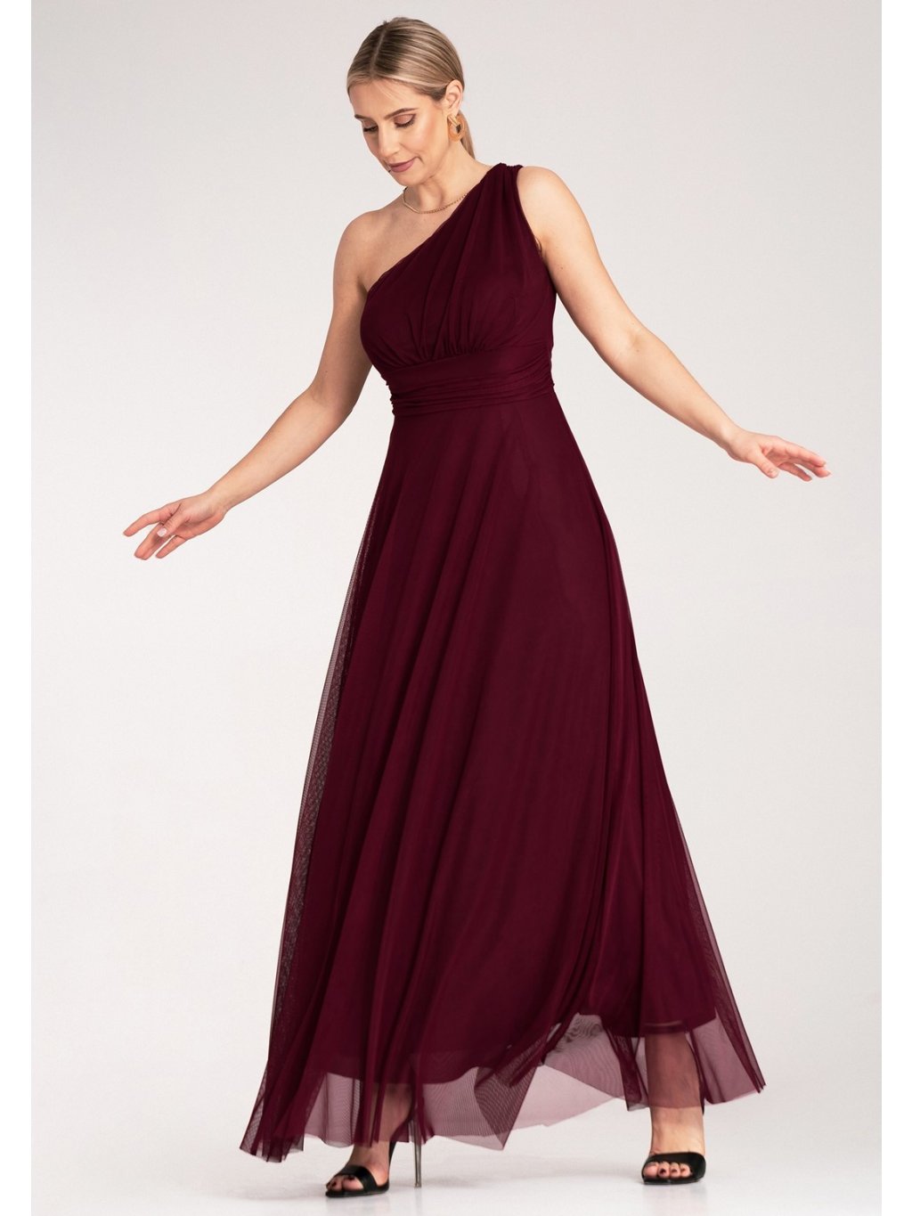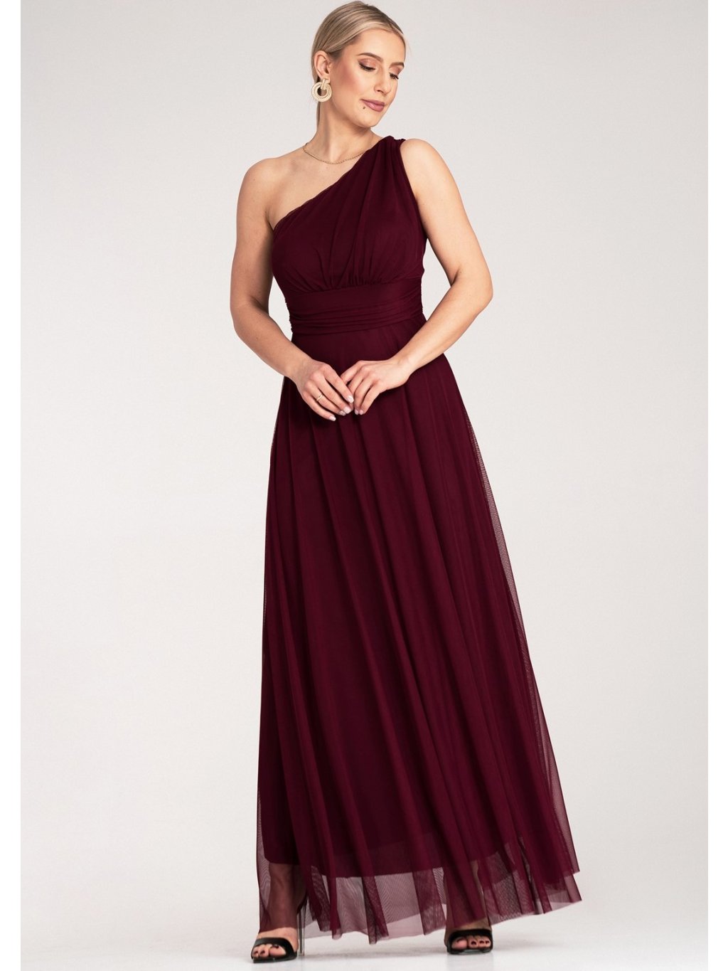 VÍNOVÉ DÁMSKÉ DLOUHÉ ŠATY S ŠIROKÝM RAMÍNKEM