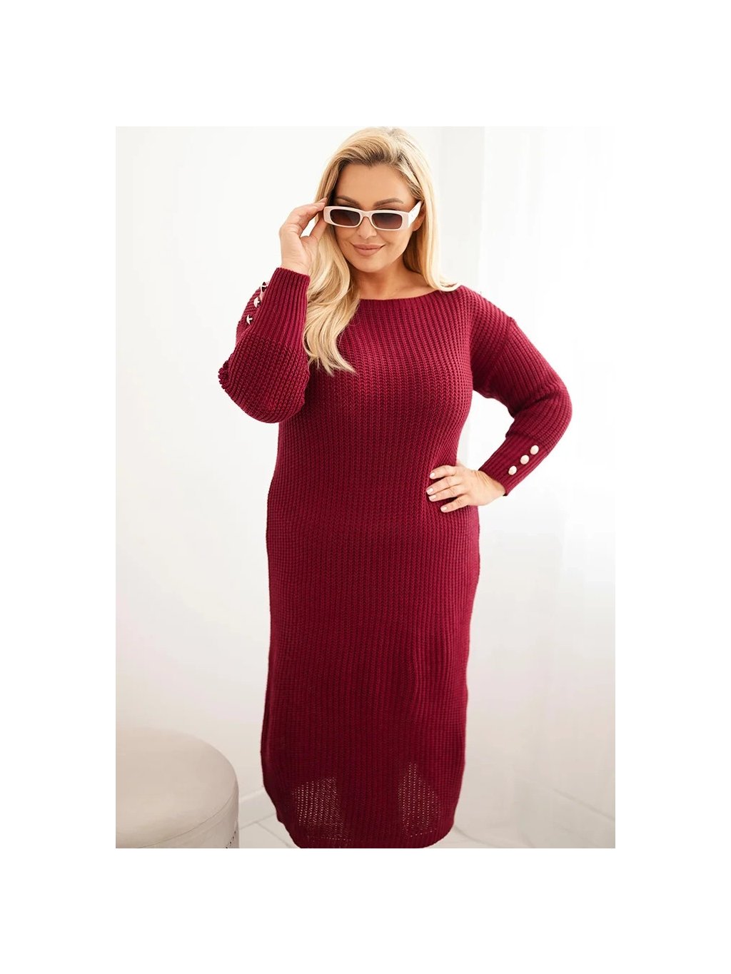 VÍNOVÉ DÁMSKÉ PLUS SIZE PLETENÉ ŠATY S MOHEREM