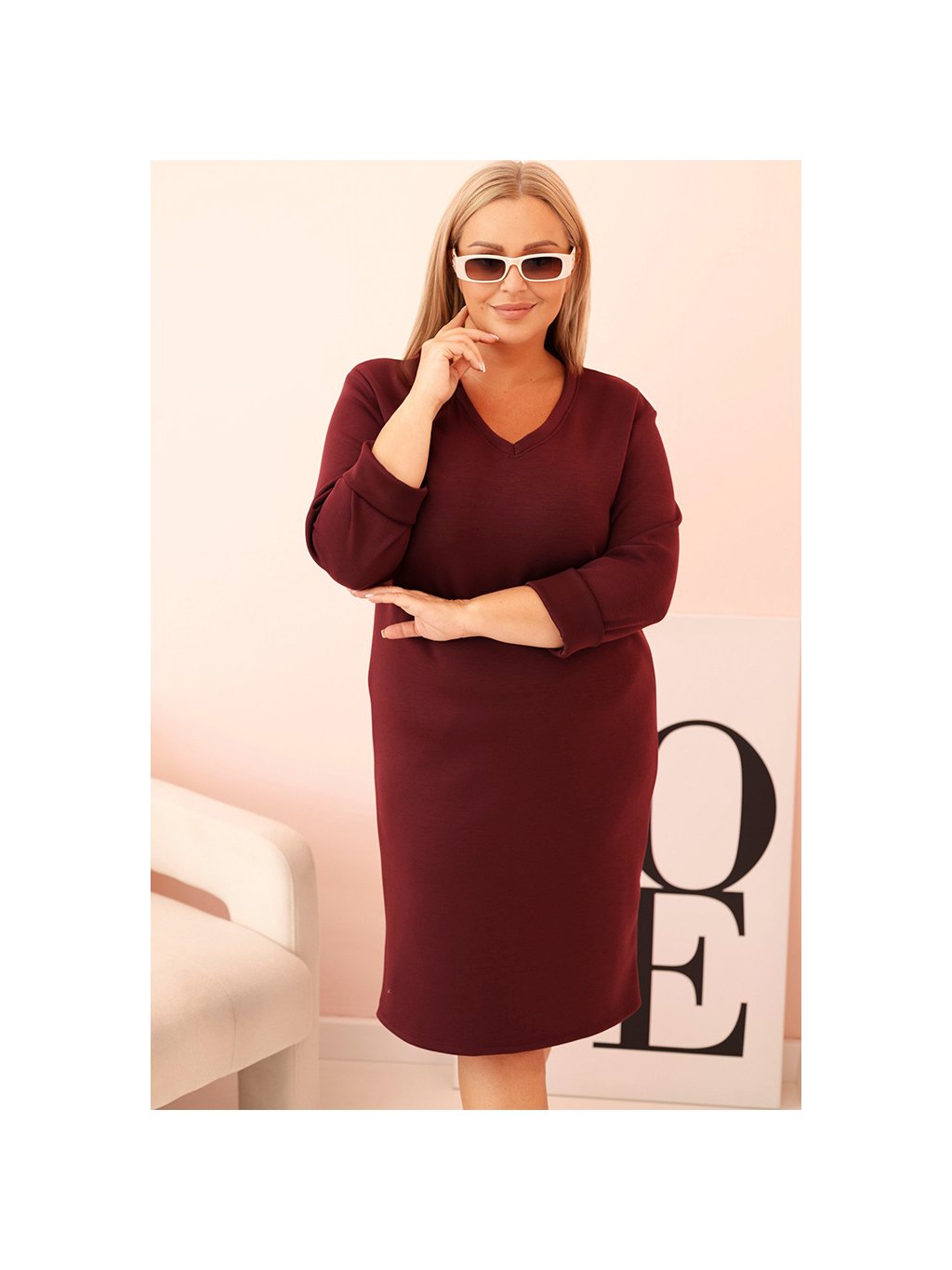 VÍNOVÉ PLUS SIZE ŠATY S VÝSTŘIHEM DO V A 3/4 RUKÁVY