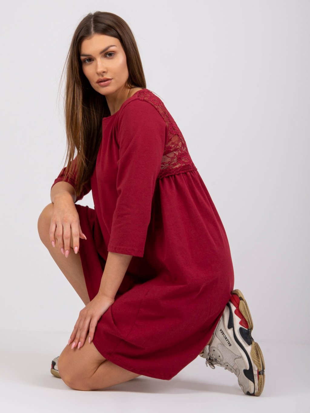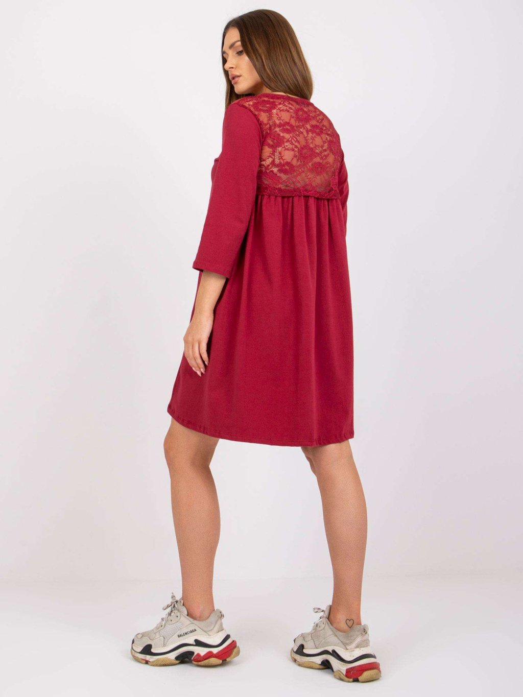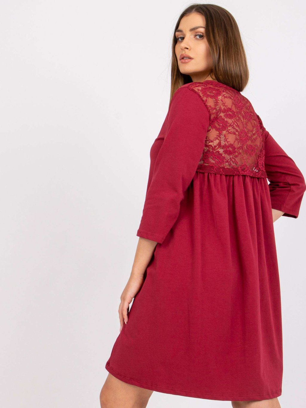 VÍNOVÉ ŠATY JAMELIA S KRAJKOVOU ZÁDOVOU ČÁSTÍ