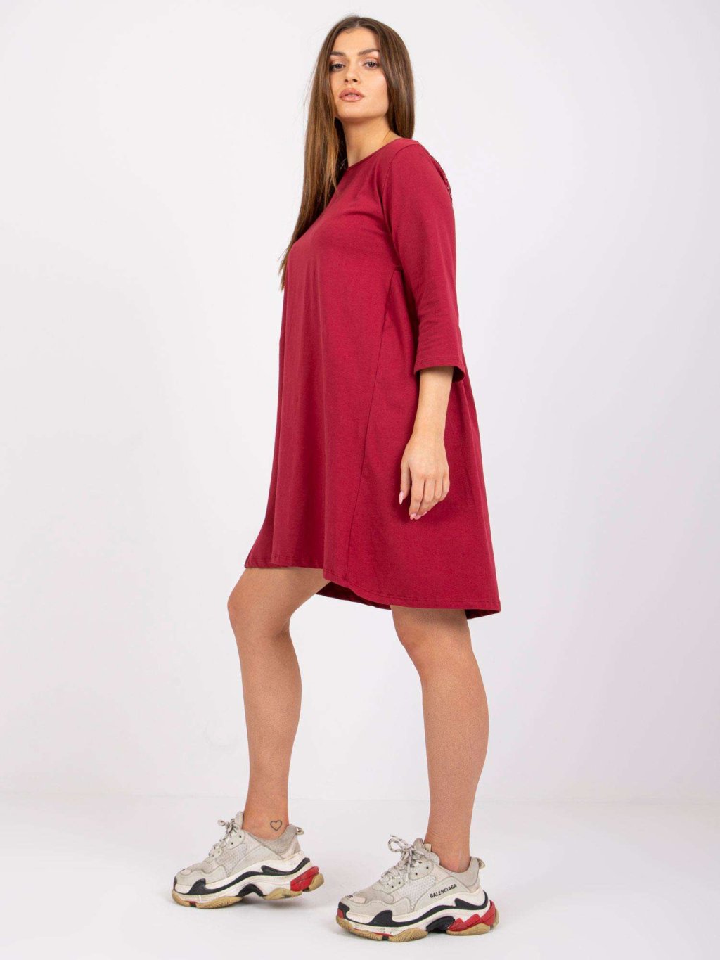 Modelka je oblečena do velikosti S/M.