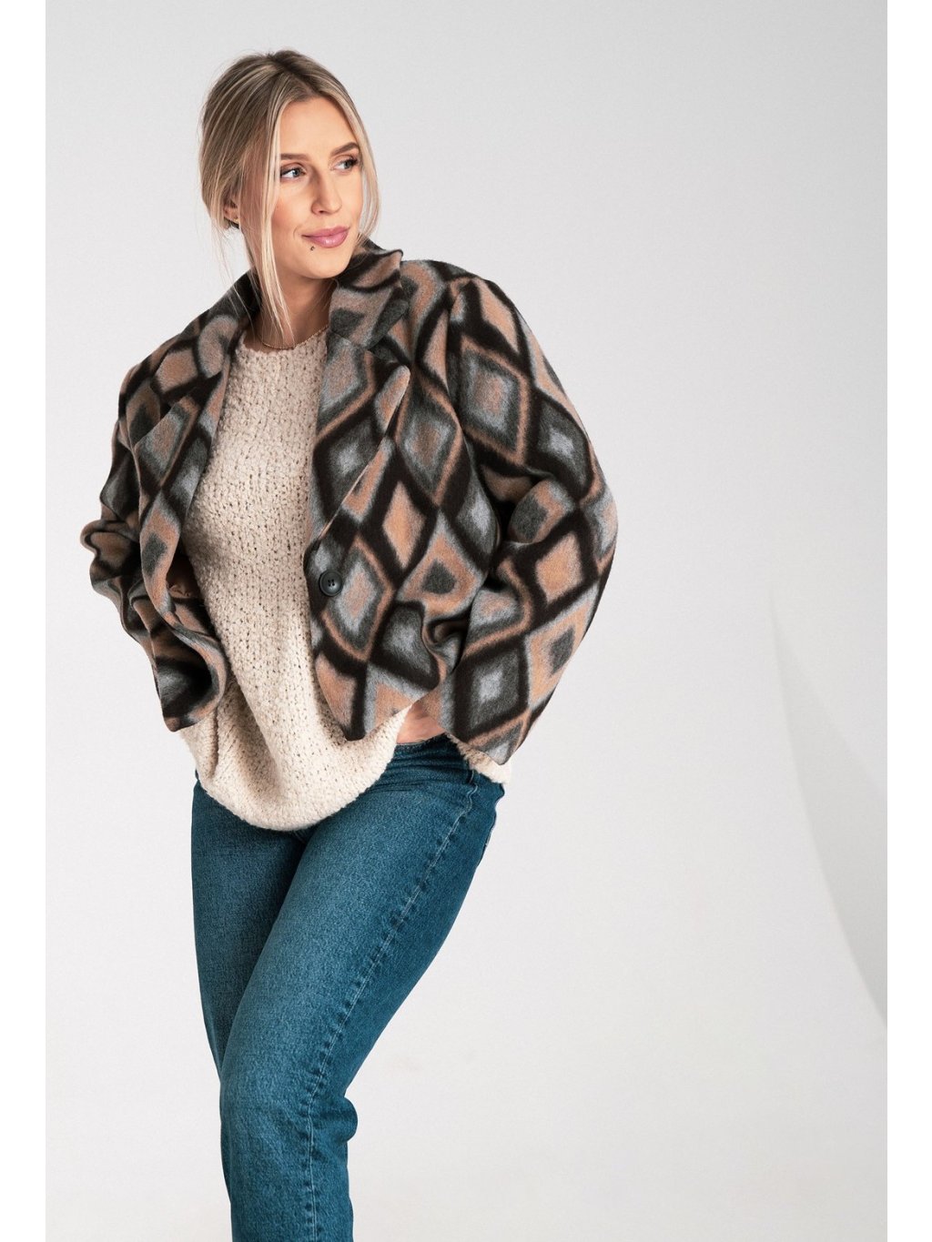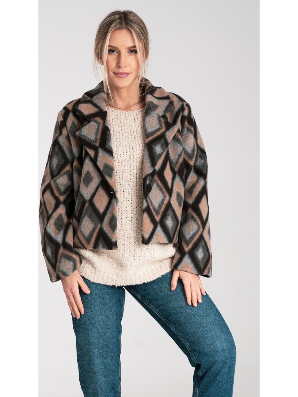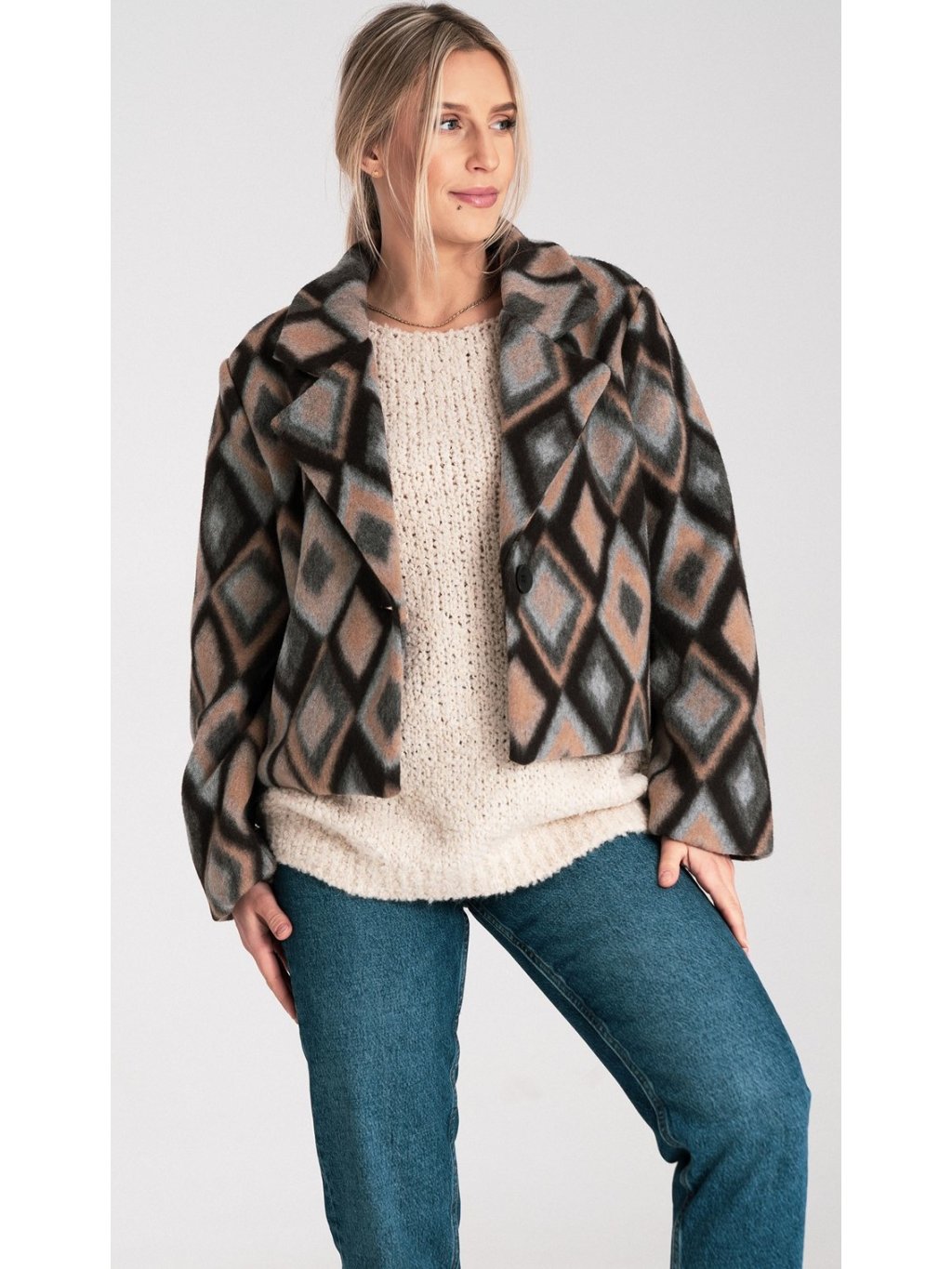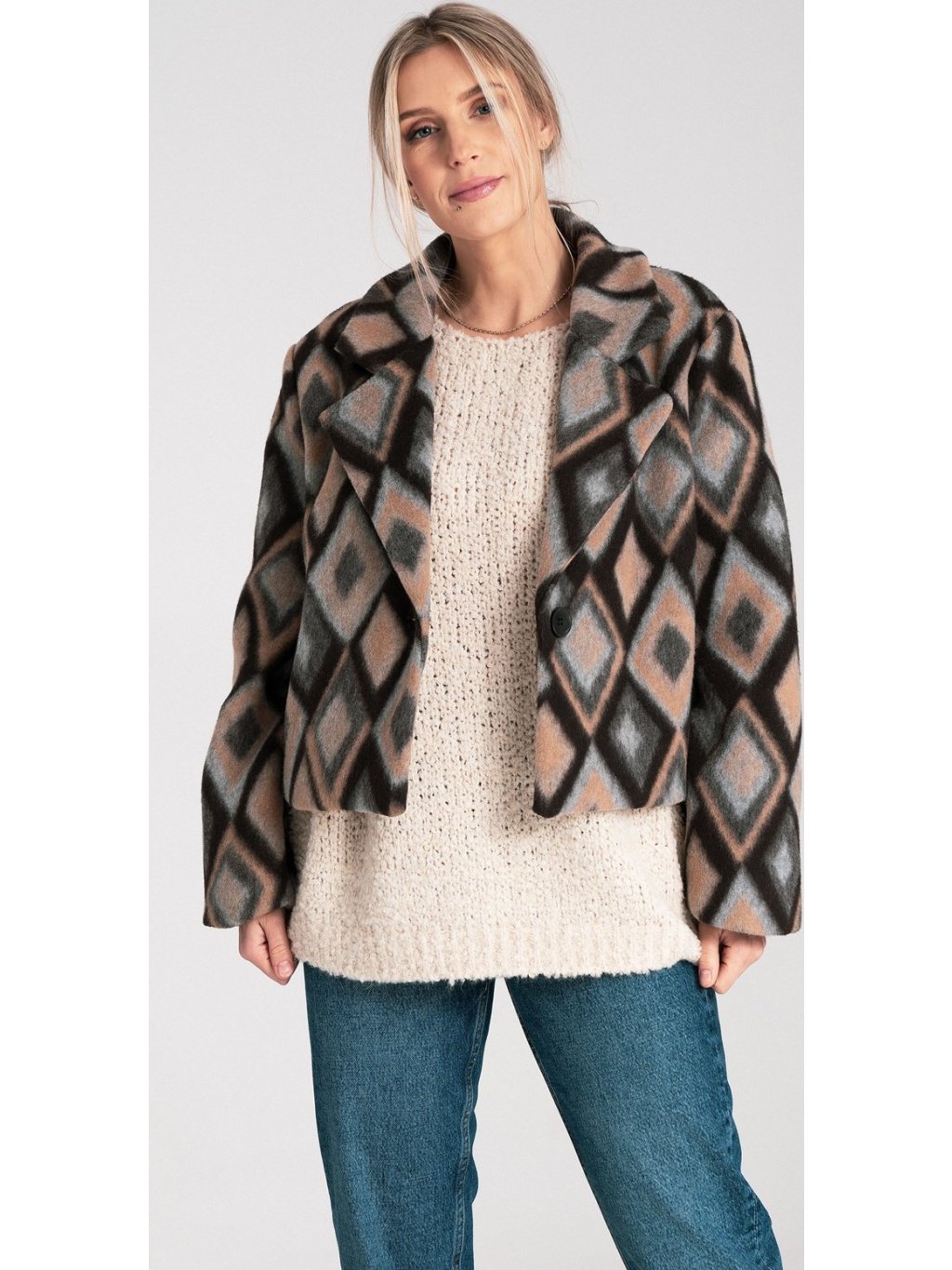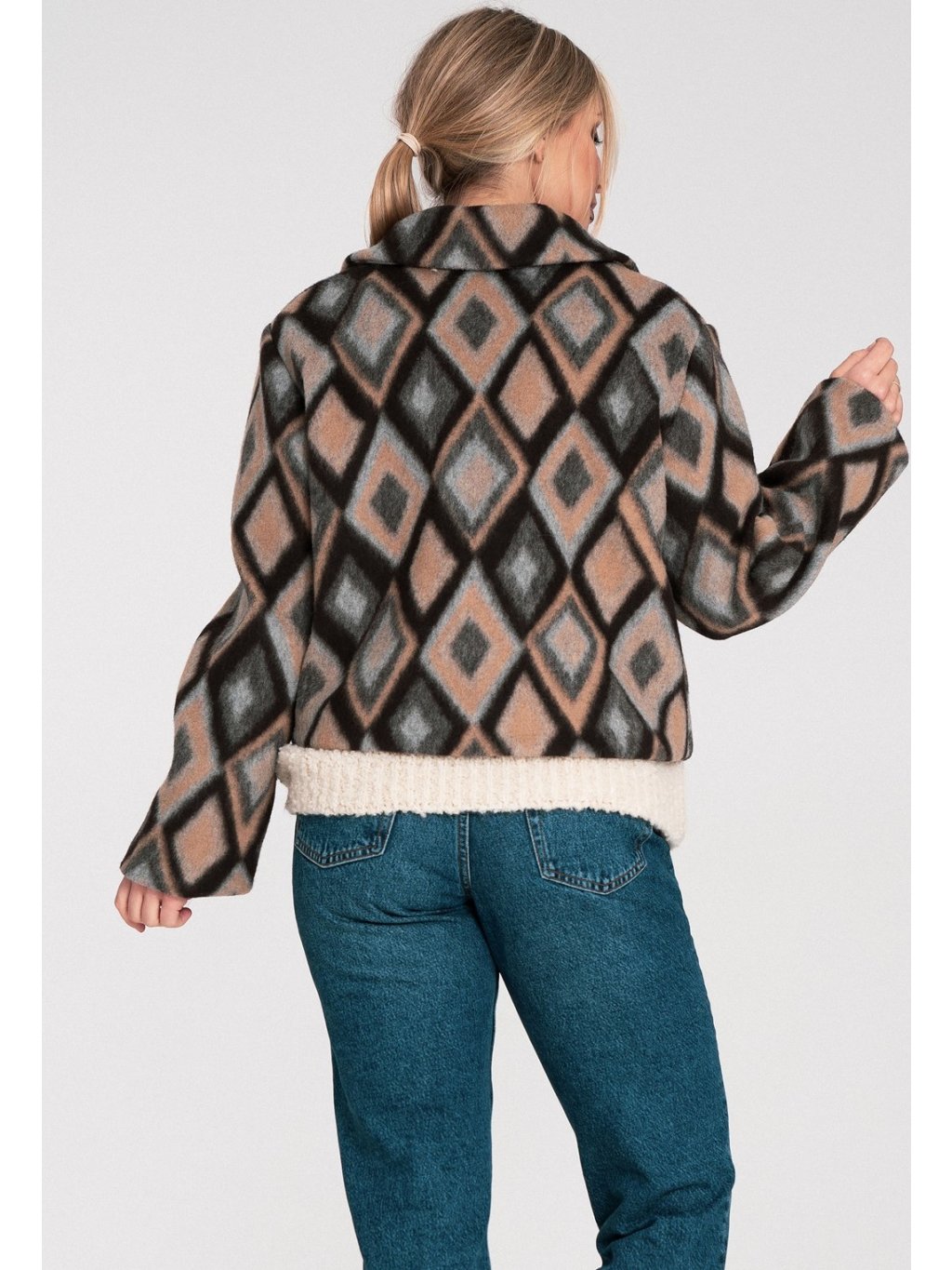 VZOROVANÁ DÁMSKÁ KRÁTKÁ FLEECOVÁ BUNDA S LÍMCEM