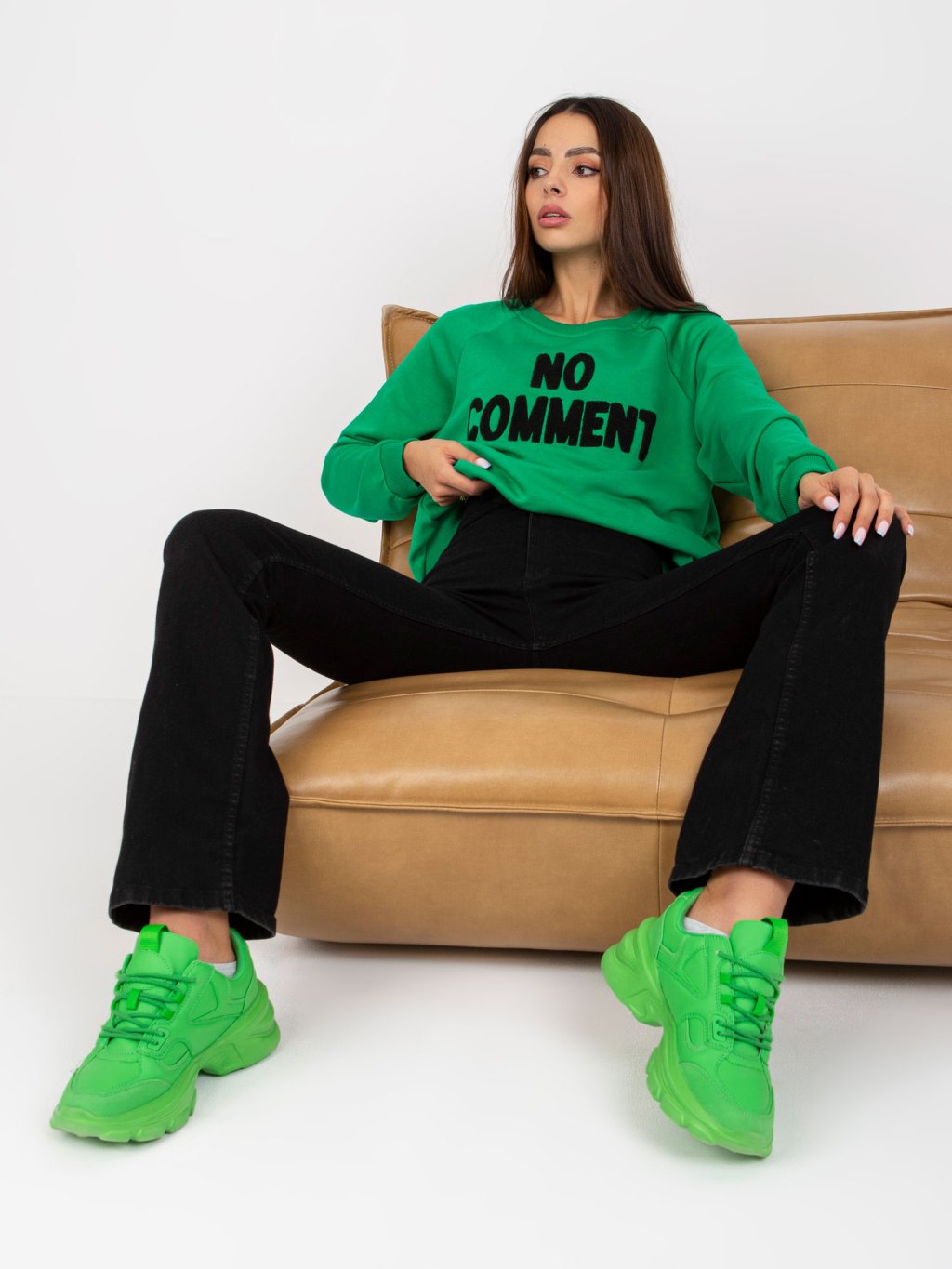 ZELENÁ DÁMSKÁ MIKINA S ČERNÝM NÁPISEM