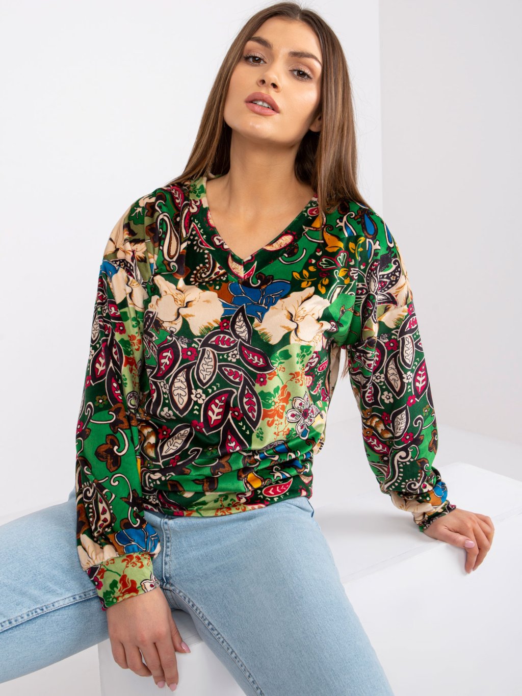 ZELENÁ HALENKA RUBY S BAREVNÝMI VZORY