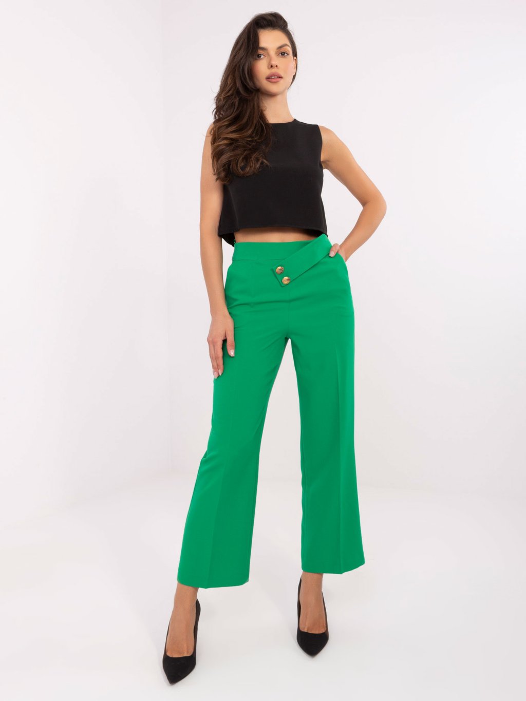 ZELENÉ DÁMSKÉ VOLNÉ ZKRÁCENÉ KALHOTY