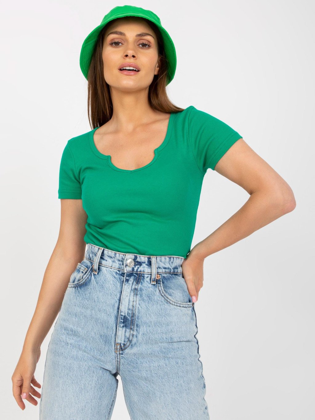 ZELENÉ TRIČKO S HLUBOKÝM VÝSTŘIHEM