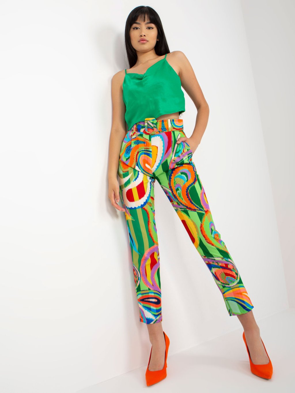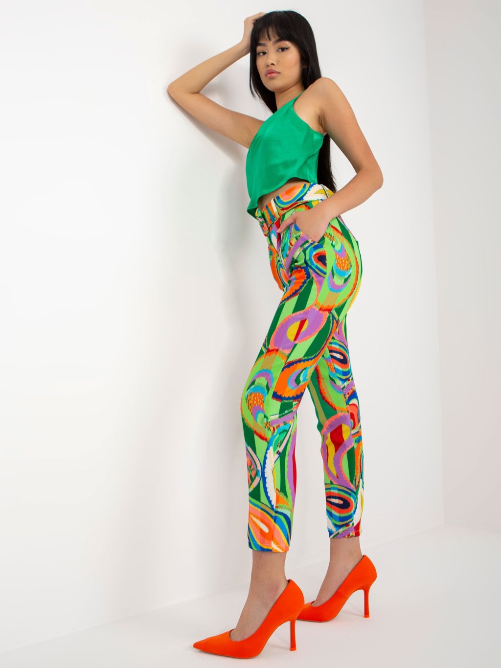 ZELENO-BAREVNÉ VZOROVANÉ KALHOTY