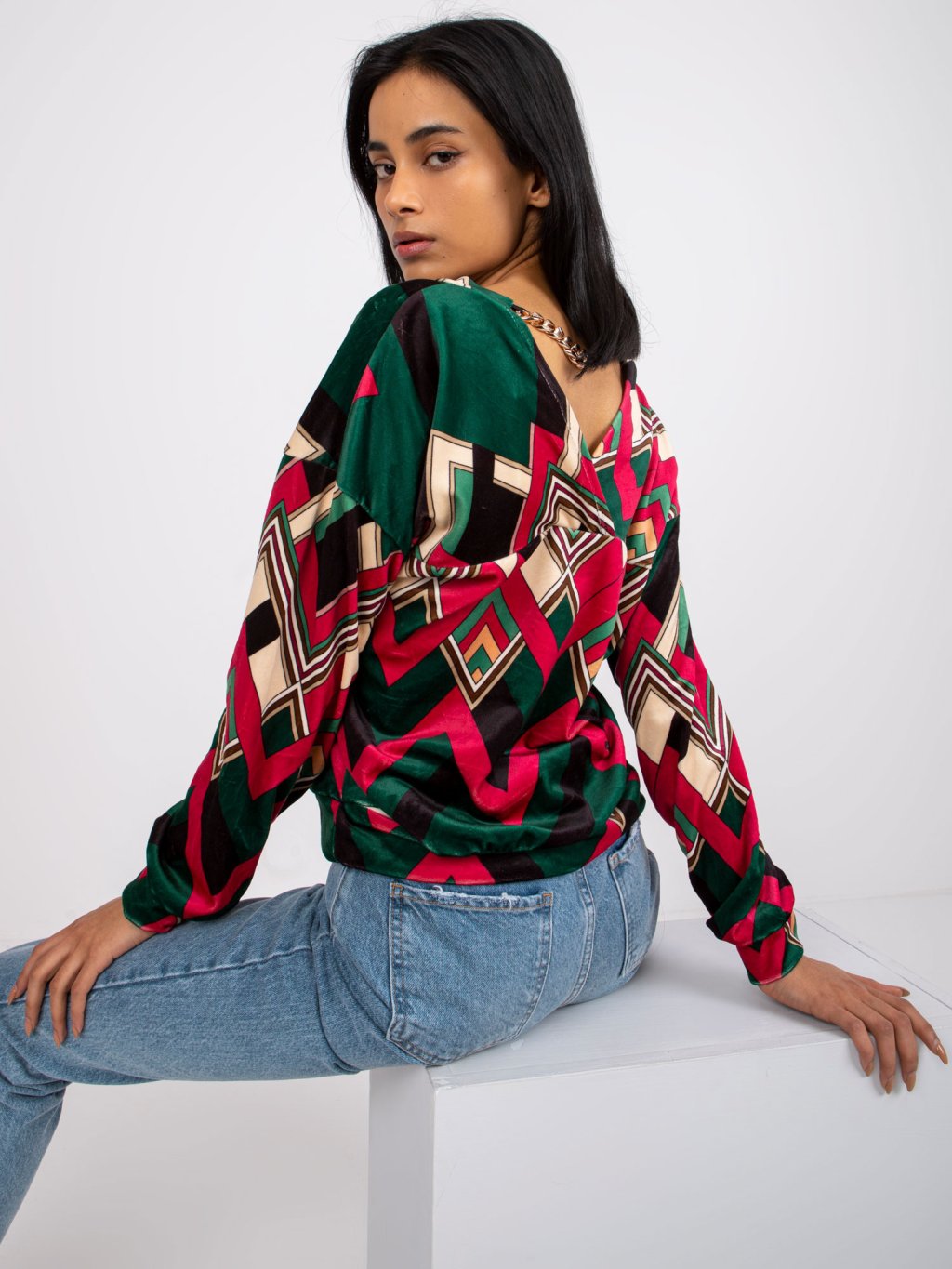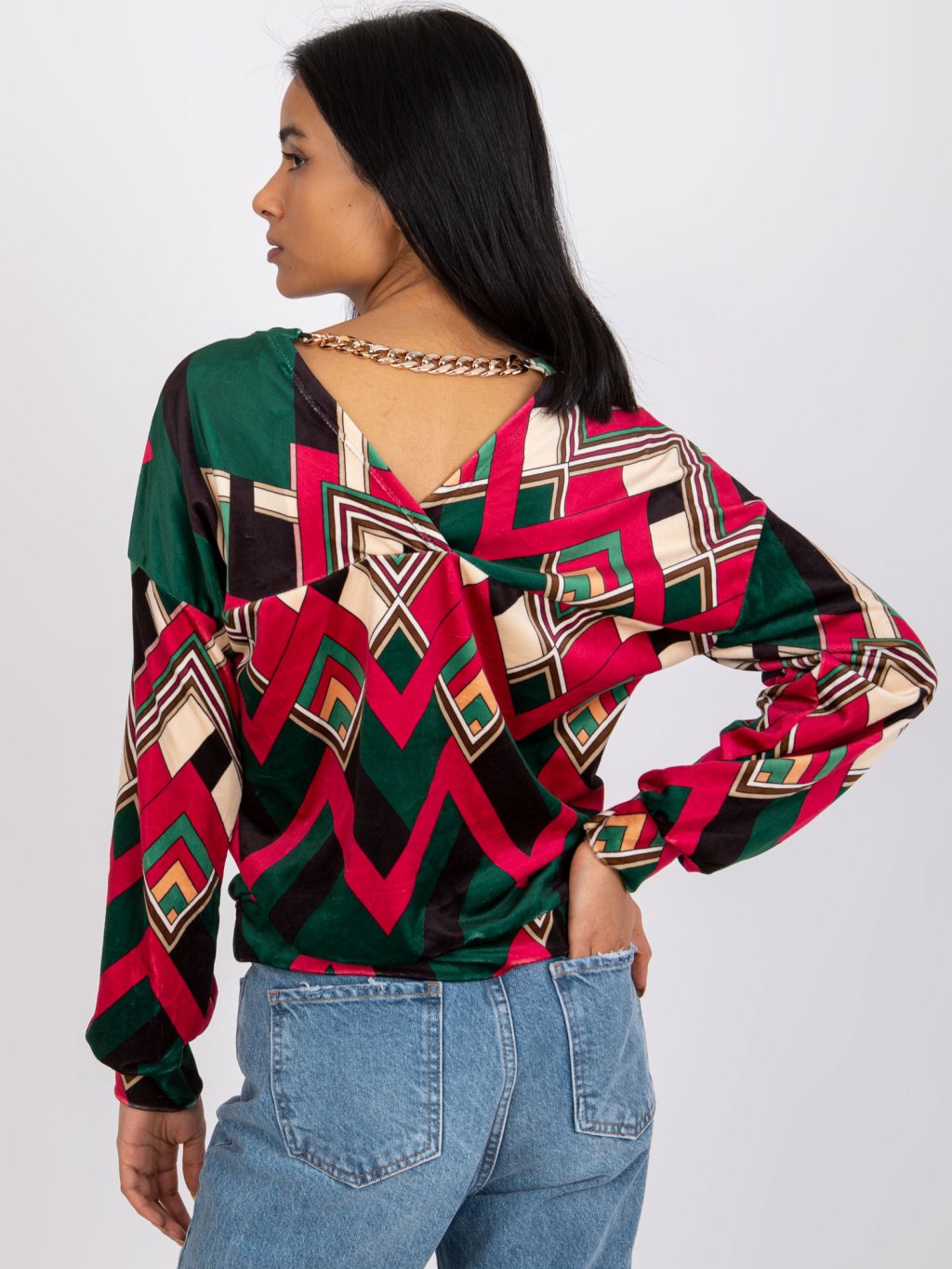 ZELENO-FUCHSIOVÁ VZOROVANÁ HALENKA EMMA S ŘETÍZKEM