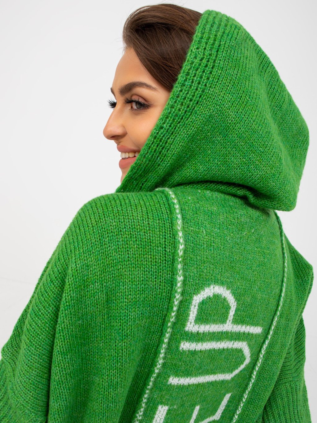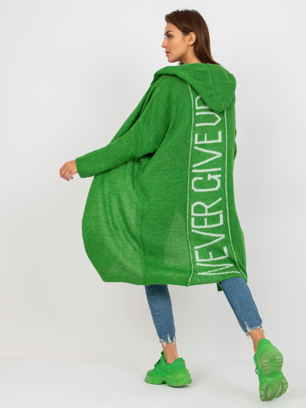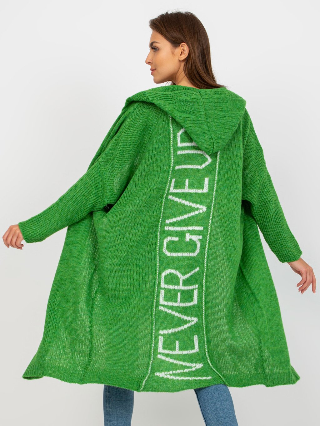 ZELENÝ DLOUHÝ KARDIGAN "NEVER GIVE UP"