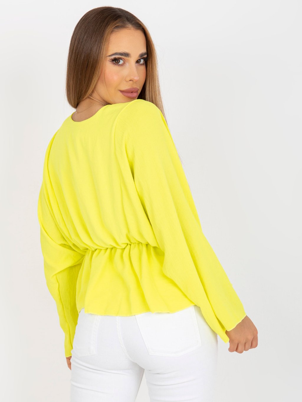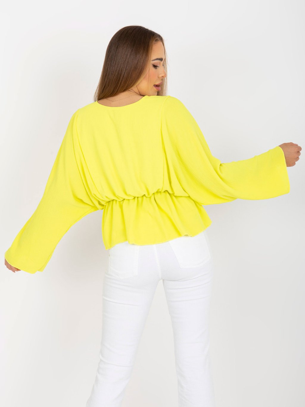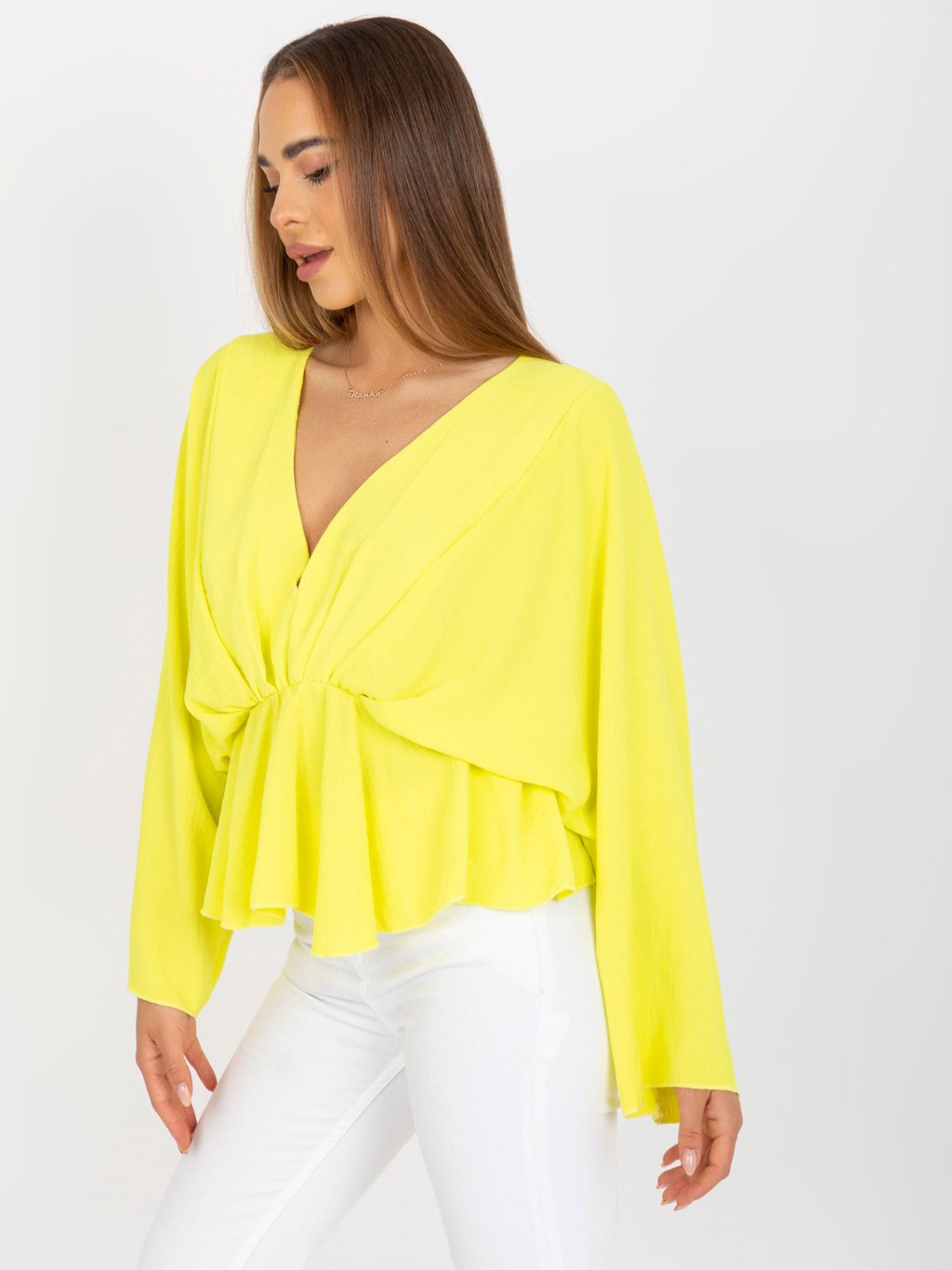 ŽLUTÁ HALENKA RAQUEL V "KIMONO" STŘIHU