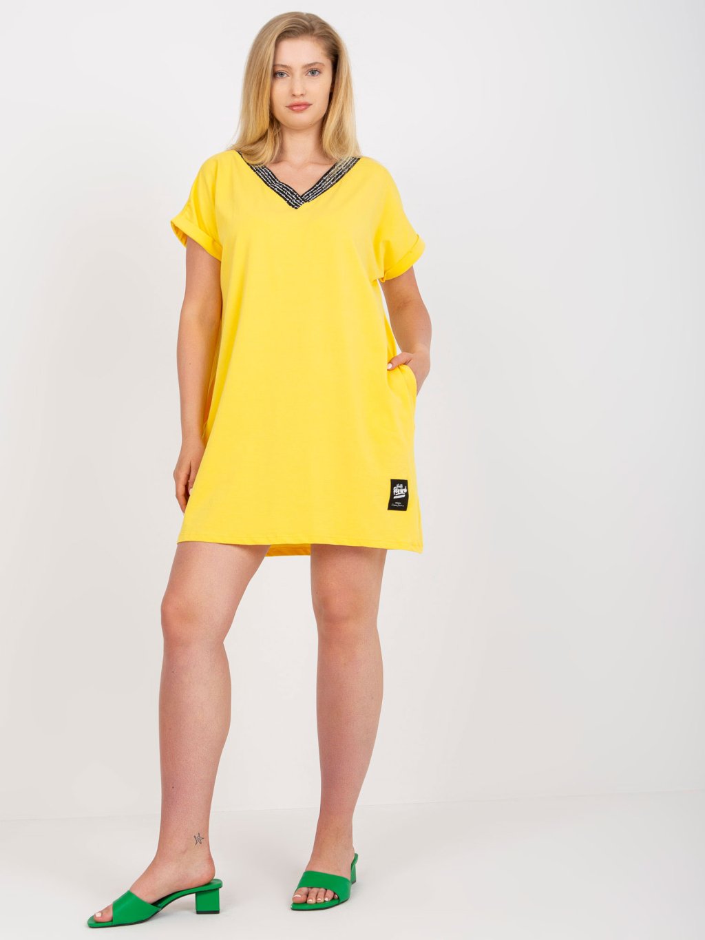 ŽLUTÉ MINI ŠATY LEMOVANÉ NÁPISY